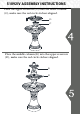 51092IV ASSEMBLY INSTRUCTIONS Screw the upper column (F) to end of the plastic tube (G). Note: To prevent breaking the plastic tube (G), do not over tighten the upper column (F). F G FINAL STEPS Fill the reservoirs with 4.15 gallons of distilled water. Plug pump into outlet. 7 Use shims (H) to level the fountain as necessary.