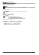 SERVICE MANUAL BRUSHING SYSTEM BRUSH MOTOR ELECTRICAL INPUT CHECK [RAZOR E 17] WARNING! This procedure must be performed by qualified personnel only. 1. 2. 3. 4. 5. 6. 7. Check that the brush (A) is installed on the machine. Drive the machine on a level ground. Check that the switches (5 and 6) are turned to “0”. If there is recovery water in the tank (43), drain it through the hose (22). Disconnect the vacuum hose (29) from the squeegee (17). Open the cover (12).
