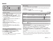 BASICS Faceplate Remote control (RC-406) Attach Volume knob (turn/press) (for KMM-BT308U / KMM-BT308 ) Remote sensor (Do not expose to bright sunlight.) Display window Detach Detach button Pull out the insulation sheet when using for the first time. How to reset KMM-BT308 How to replace the battery Your preset adjustments will also be erased. To Do this (on the faceplate) Do this (on the remote control) Turn on the power Press B SRC. • Press and hold to turn off the power.