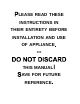 LEASE READ THESE INSTRUCTIONS IN THEIR ENTIRETY BEFORE INSTALLATION AND USE OF APPLIANCE *** THIS MANUAL AVE FOR FUTURE REFERENCE