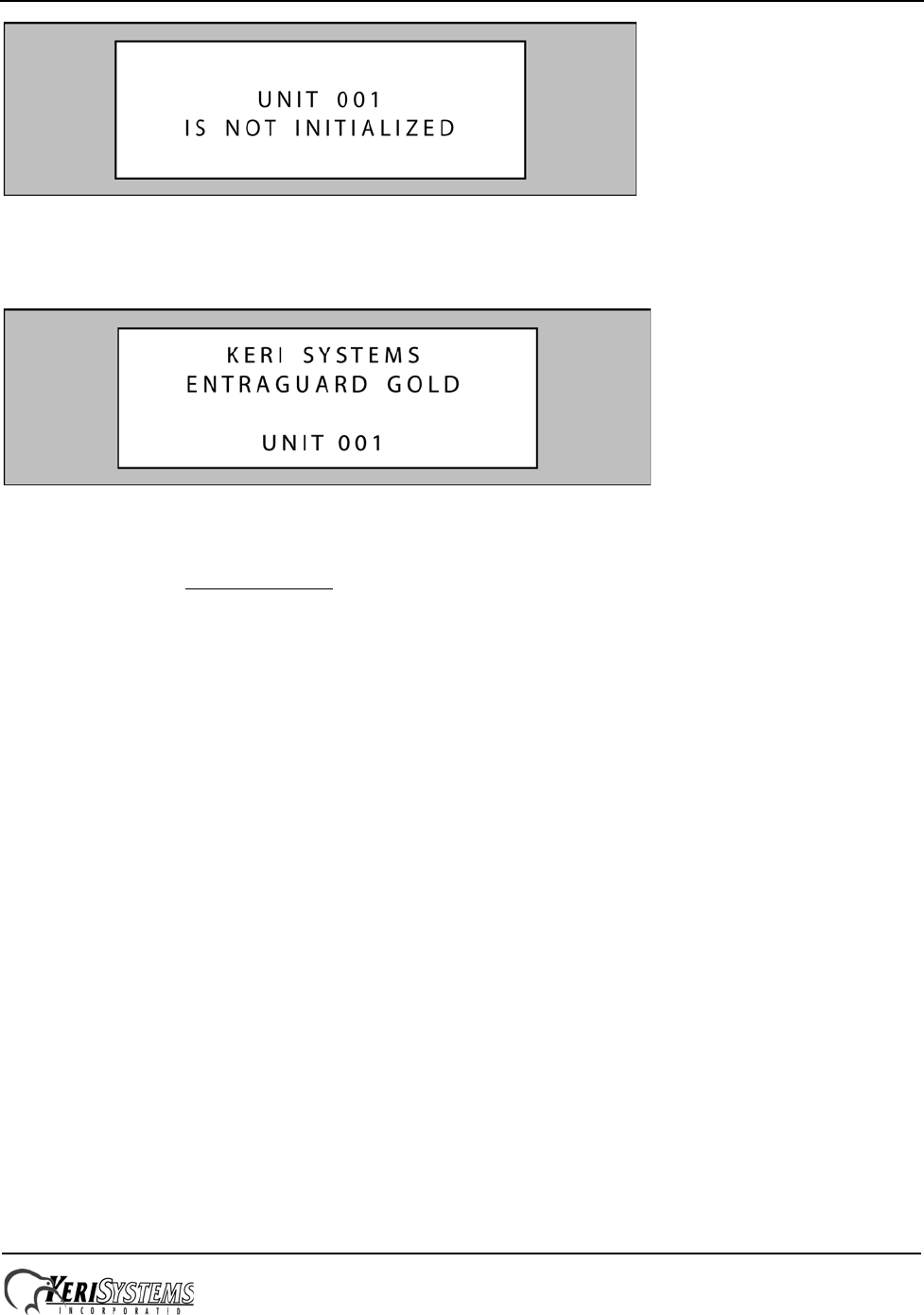 NOTE: Any time the “Not Initialized Unit Warning” appears on the LCD display, the unit needs a Doors update.