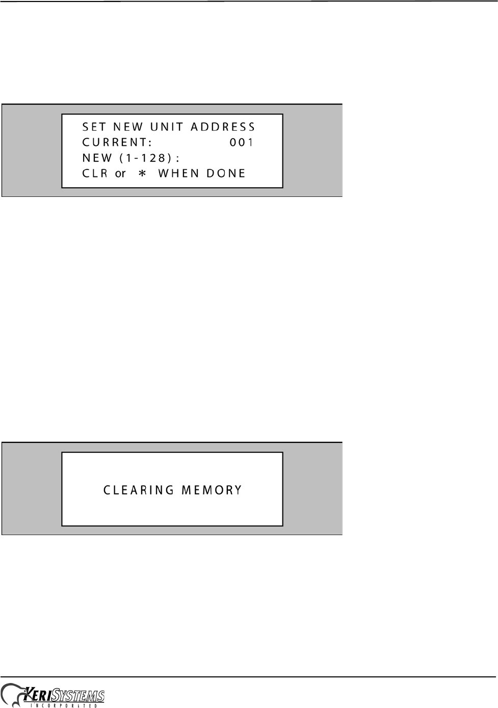 Once the memory has been cleared, the unit is ready to be configured. The LCD will display a warning that the unit has