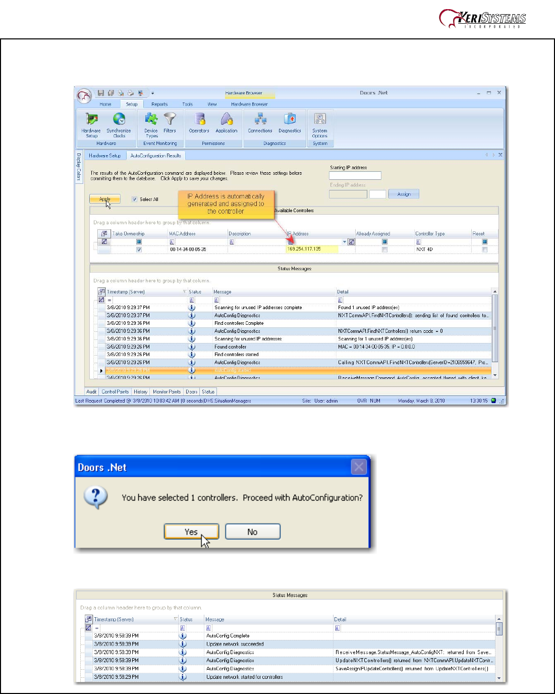 o Auto Configuration will next assign the IP Address to the controller and update the controller’s
