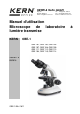 KERN & Sohn GmbH Ziegelei 1 D-72336 Balingen E-mail : info@kern-sohn.com Tél. : +49-[0]7433- 9933-0 Fax : +49-[0]7433-9933-149 Internet : www.kern-sohn.com Manuel d'utilisation Microscope de laboratoire lumière transmise KERN OBE-1 OBE 101, OBE 102, OBE 103 OBE 107, OBE 108, OBE 109 OBE 111, OBE 112, OBE 113 OBE 104, OBE 110, OBE 114 Version 1.