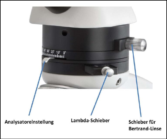 Für das Standard-Polarisationsverfahren muss sich der Schieber für die Bertrand-