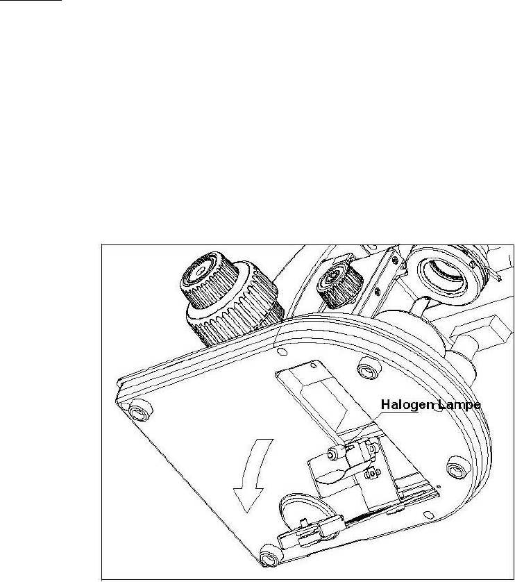 herausgeklappt werden (siehe Abbildung). Die defekte Halogen Lampe kann nun