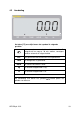 4.3 Toetsenbord Toets Bepaling Functieomschrijving Omschakelen van weegeenheden. Toets UNIT Het menu verlaten, terug naar de weegmodus. 4.3.1 Toets HOLD Nadat de toets HOLD wordt gedrukt, wordt de gewichtsaanduiding “bevroren” totdat de toets HOLD opnieuw wordt gedrukt. Toets TARE Tarreren. De toets NUL Corrigeert het nulpunt van de weegschaal. De aanduiding wordt op nul gezet. De toets ON/OFF Weegschaal aan-/uitzetten.