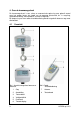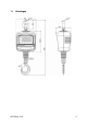 4. Over de kraanweegschaal De kraanweegschaal is een ruime en economische oplossing voor gebruik overal waar het wegen boven het hoofd van de operator plaatsvindt, bv. in recycling, metaalbehandeling, machinebouw, vervoer en logistiek. Bij toepassing van een radio-afstandsbediening wordt het gebruik daarvan nog meer comfortabel. 4.1 Overzicht Afb. 1: Aanzicht weegschaal vooraan en achteraan 1 2 3 4 5 6 9 Oog Aanduiding Toetsenbord Veiligheidsklink Draaihaak Tweede display Afb.