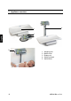 9.6 Stand assembly (optional) Use the 4 screws to attach the stand to the bottom of the scale. Remove the two lateral rubber plugs from the display unit. Secure the display unit with the two black rotary knobs to the fixing device. Position display unit with the rotary knobs. 9.