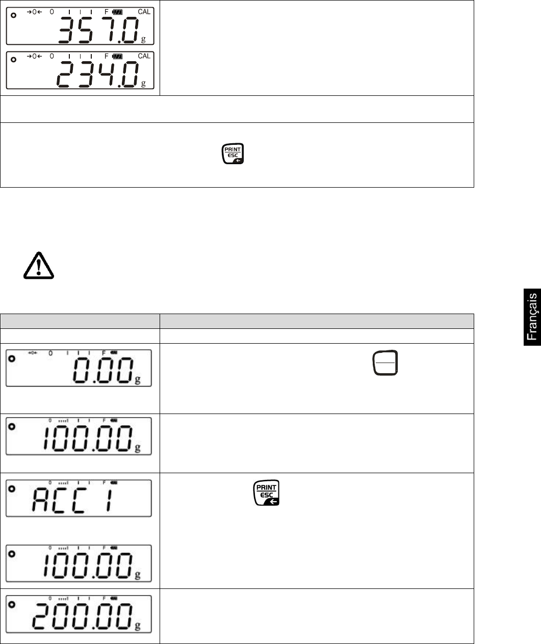 attendre l’affichage zéro et appuyer sur . Le nombre de pesées et le poids total