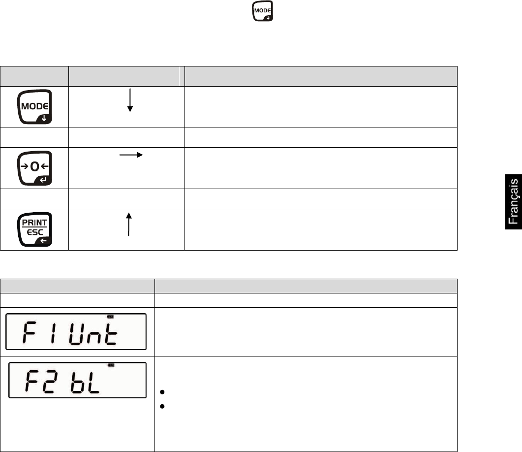 Le menu est appelé par pression sur la touche , tandis que la balance effectue le