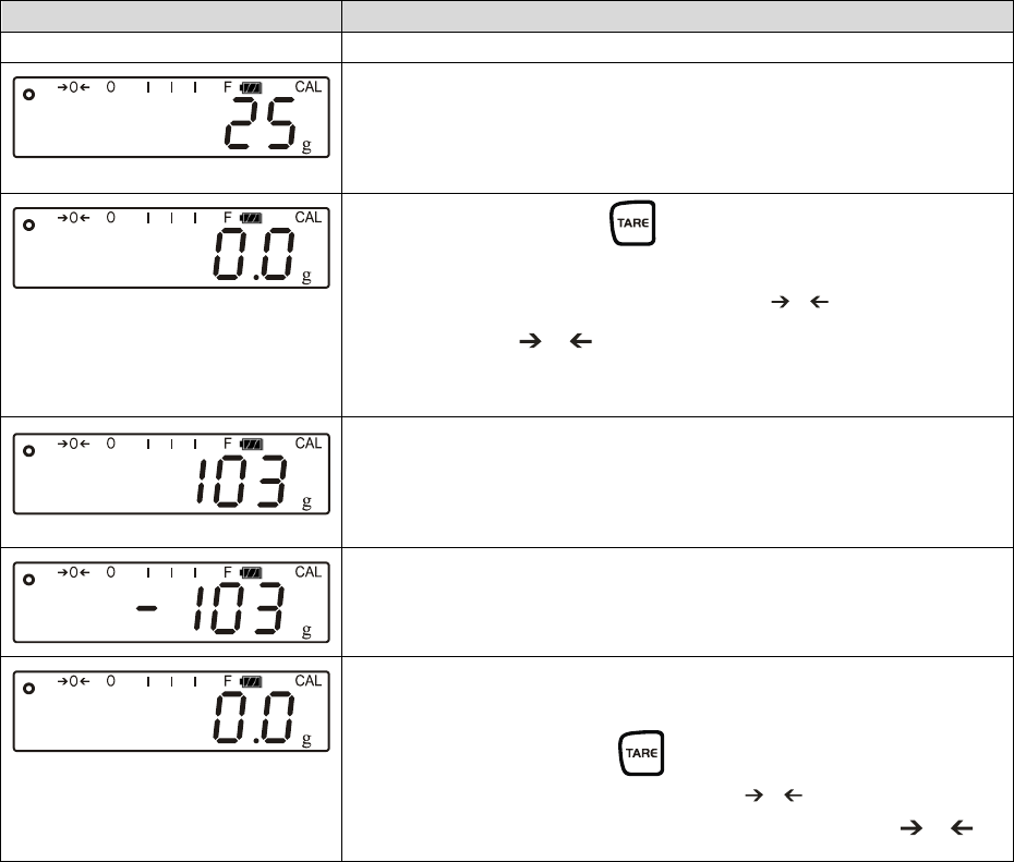 Po zdjęciu pojemnika wagi jego masa wyświetlana