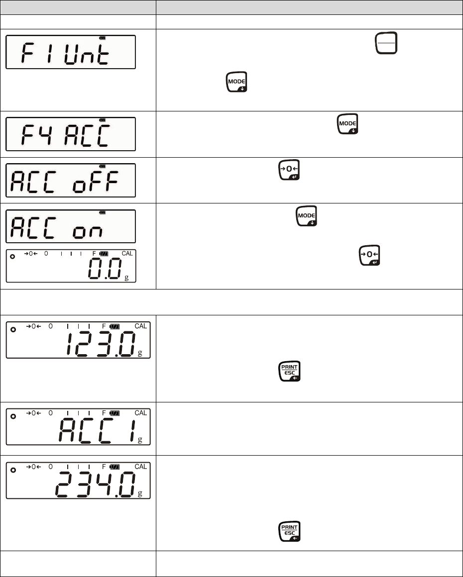 Na chwilę zostanie wyświetlone wskazanie „ACC 1‖,