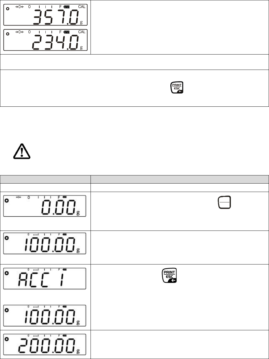 wyświetlenie wskazania zerowego i nacisnąć przycisk . Na chwilę zostanie