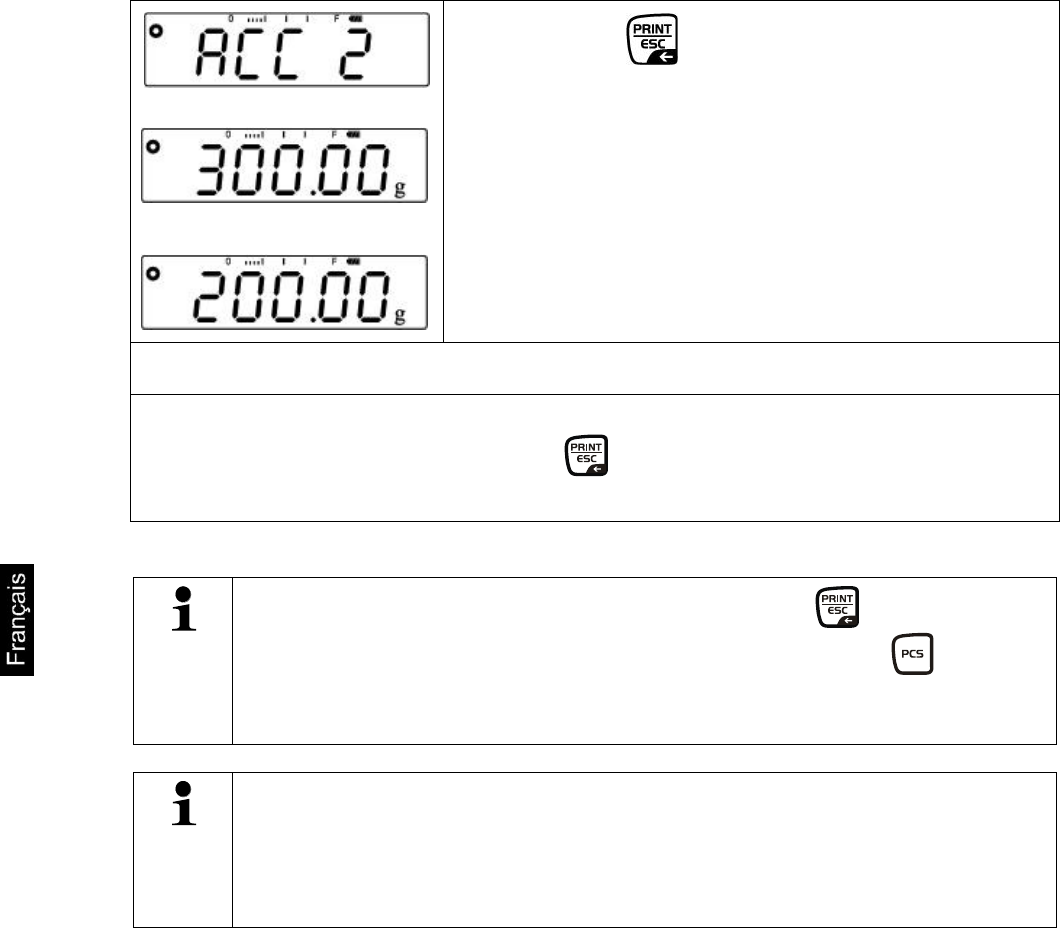 attendre l’affichage zéro et appuyer sur . Le nombre de pesées et le poids total