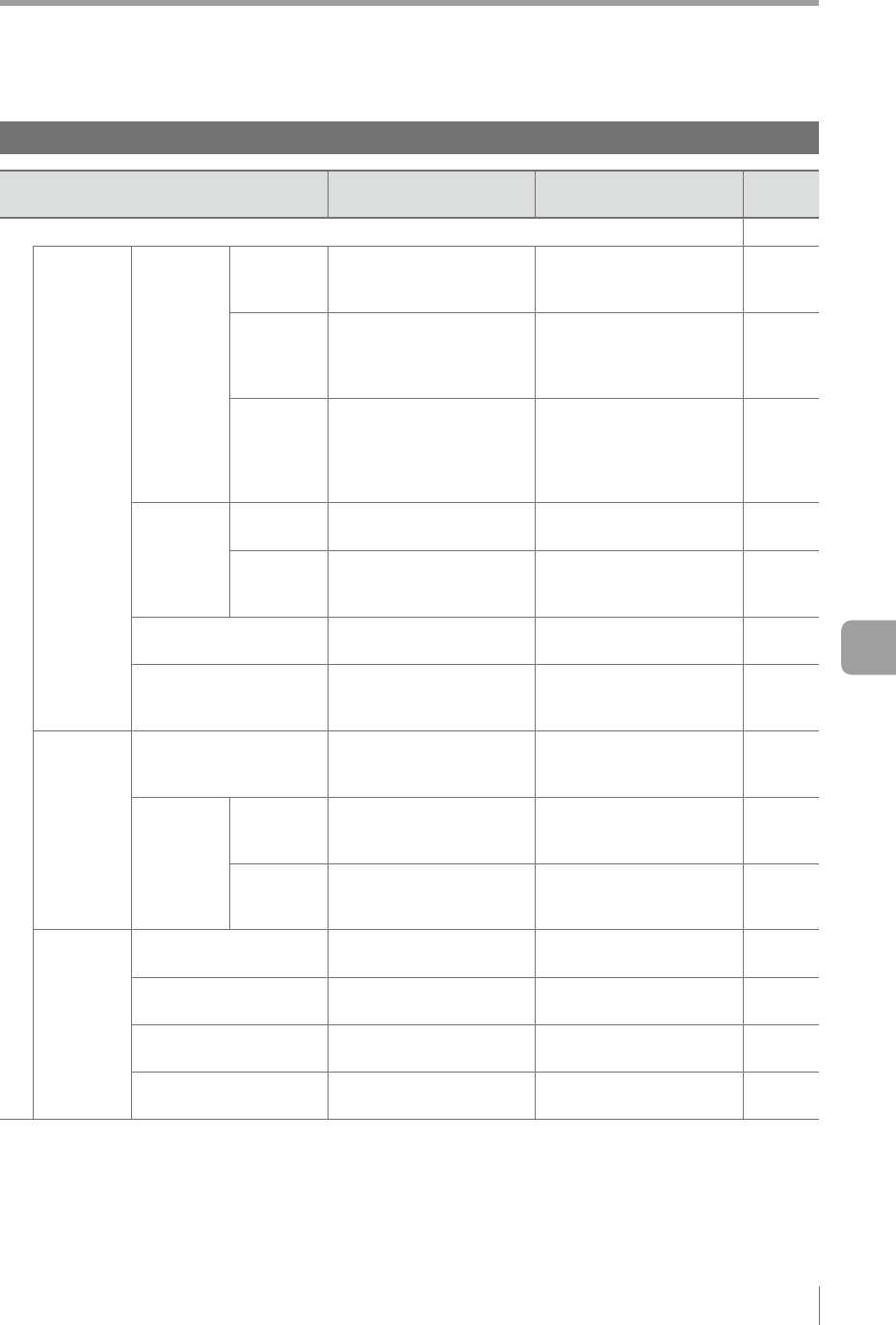 Menu Description Setting range