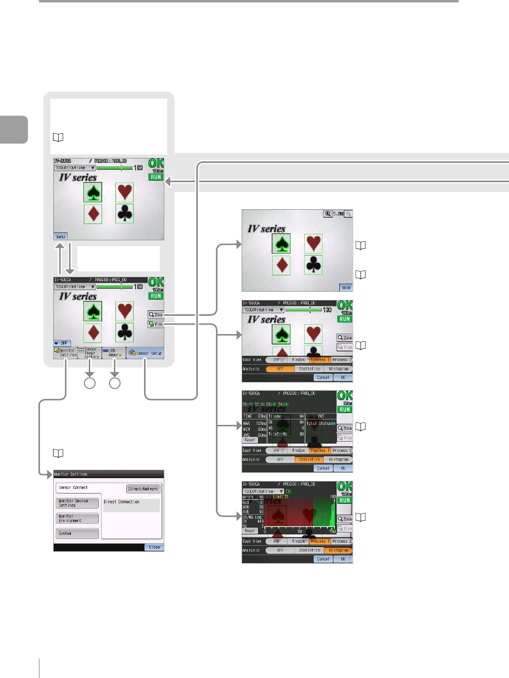 For details of what can be set on each screen and its operation, see to the applicable references.