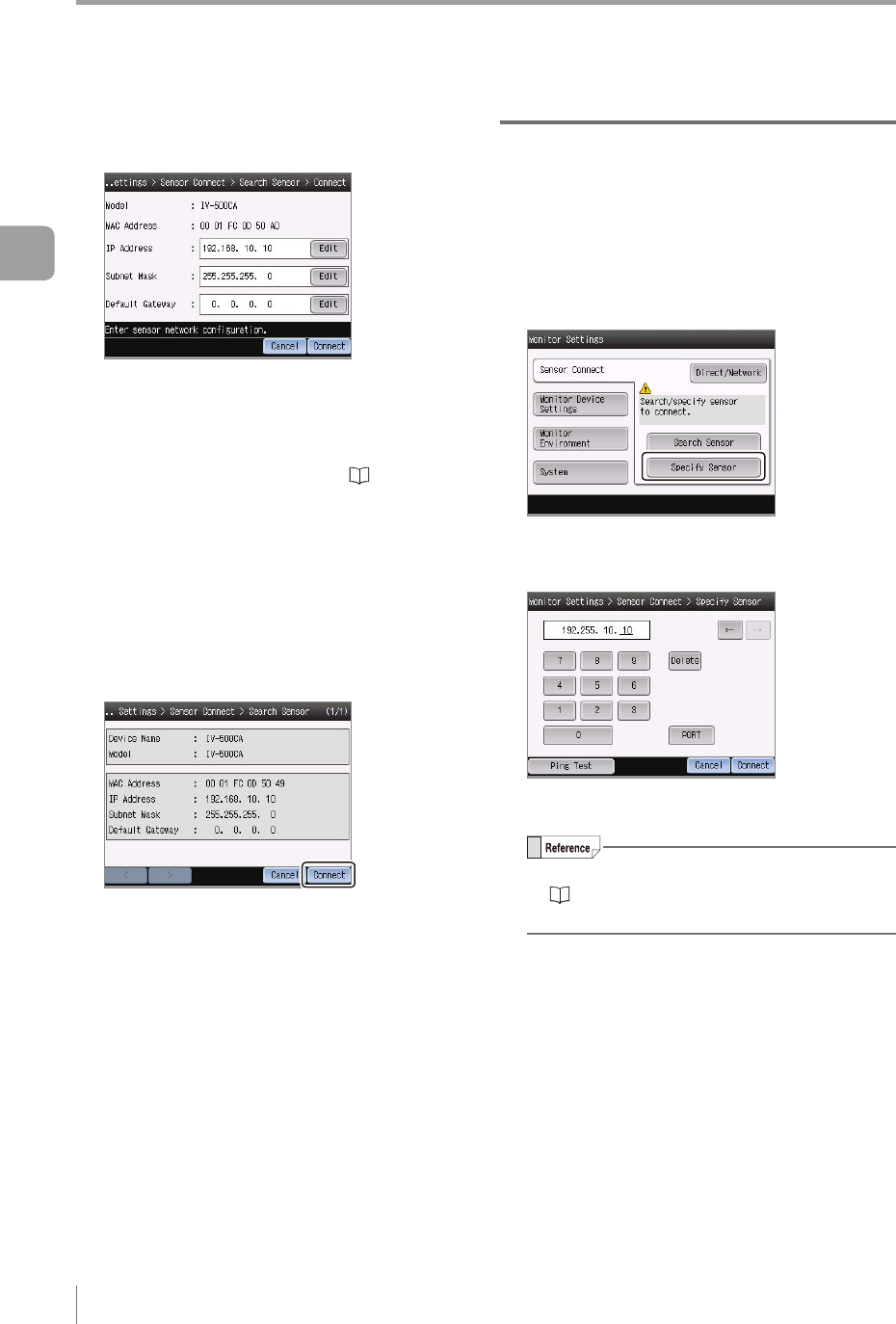 Enter the IP address of the sensor to be