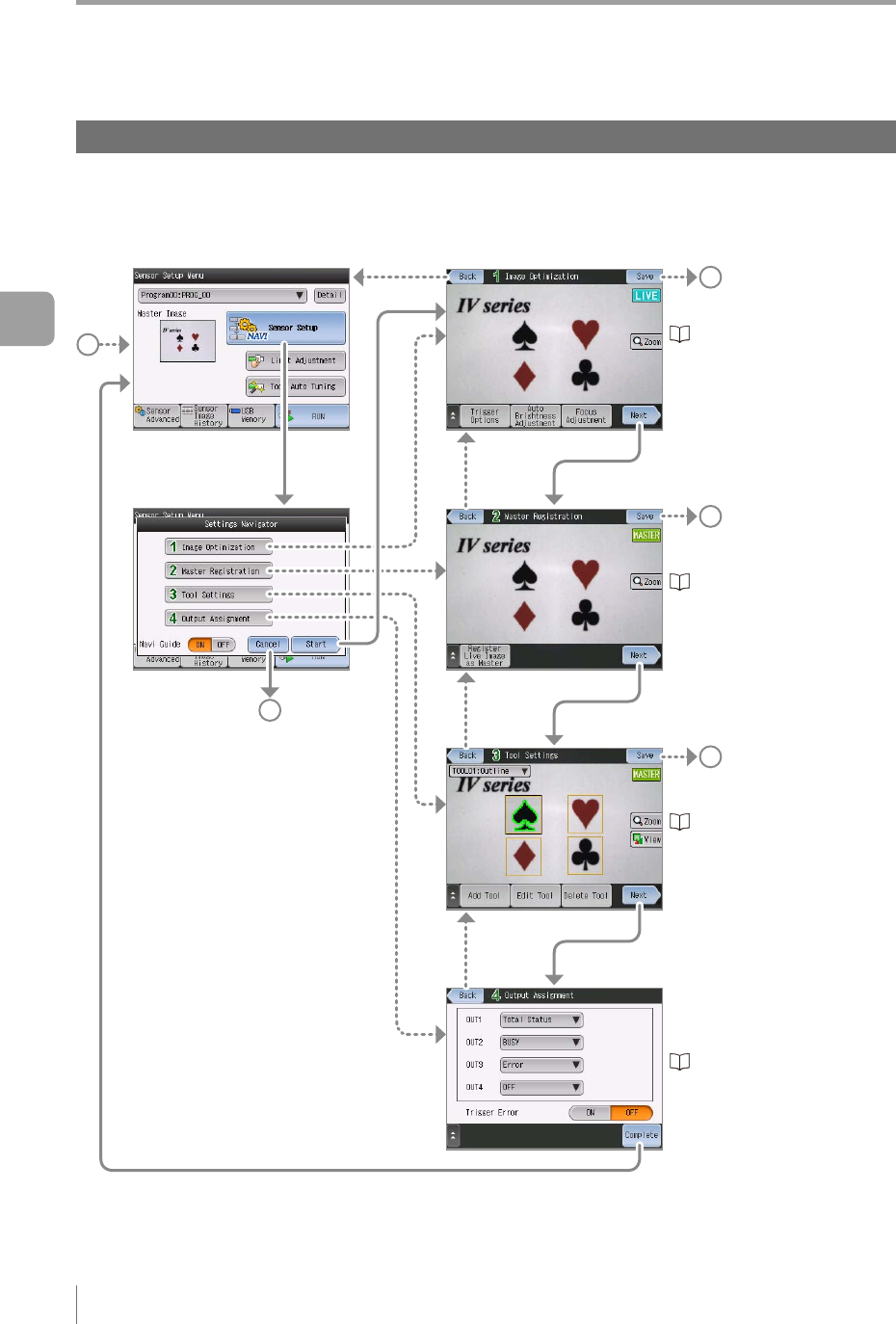 This section explains each setting screen to be displayed in the Settings Navigator and the operation ow.