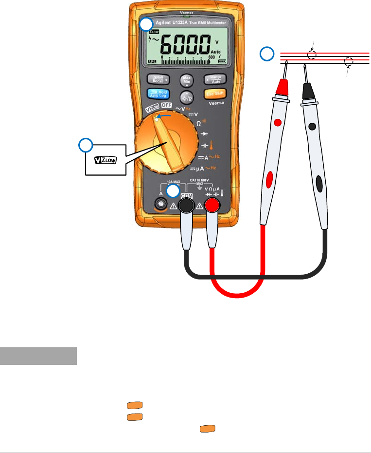 • Press once to lock the initial signal identification (AC V or DC V).