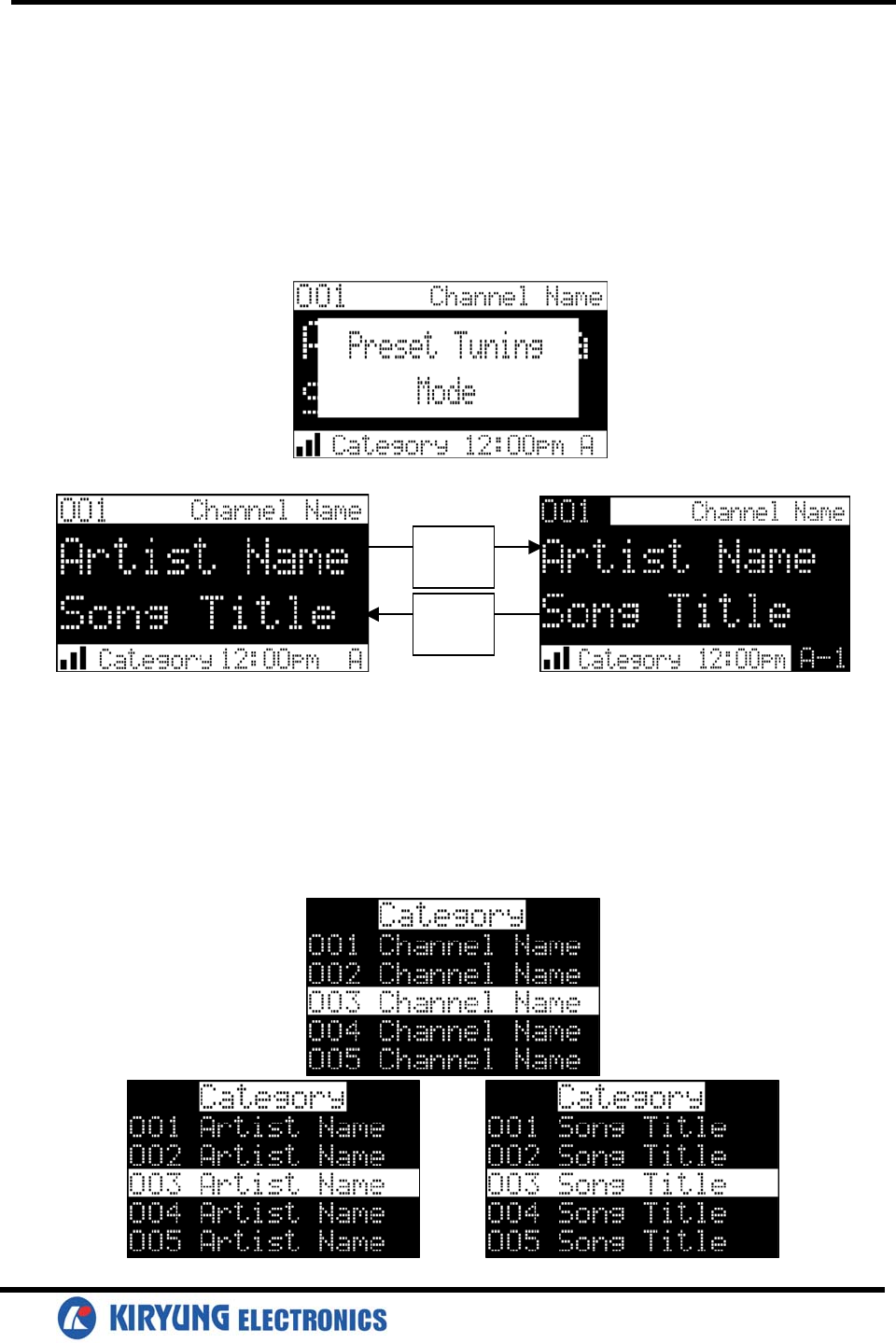 stream name. While in the Preset List menu, pressing the DISP button once will change to Artist List; a
