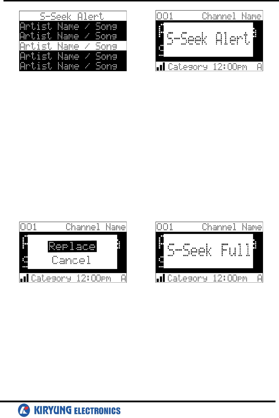 spaces are full, S-Seek Full will flash on the display for 1 second, followed by a pop-up screen