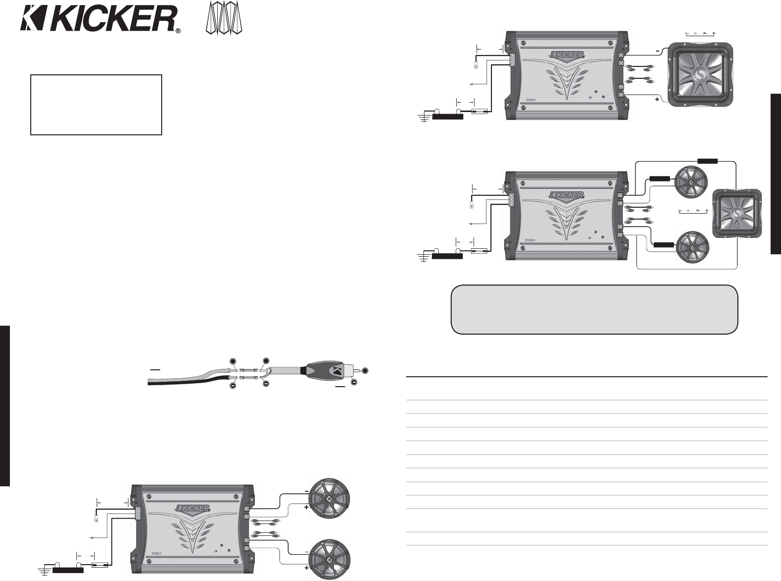 Note: To get the best performance from your new Kicker Amplifi er, we recommend using genuine Kicker Accessories and Wiring.