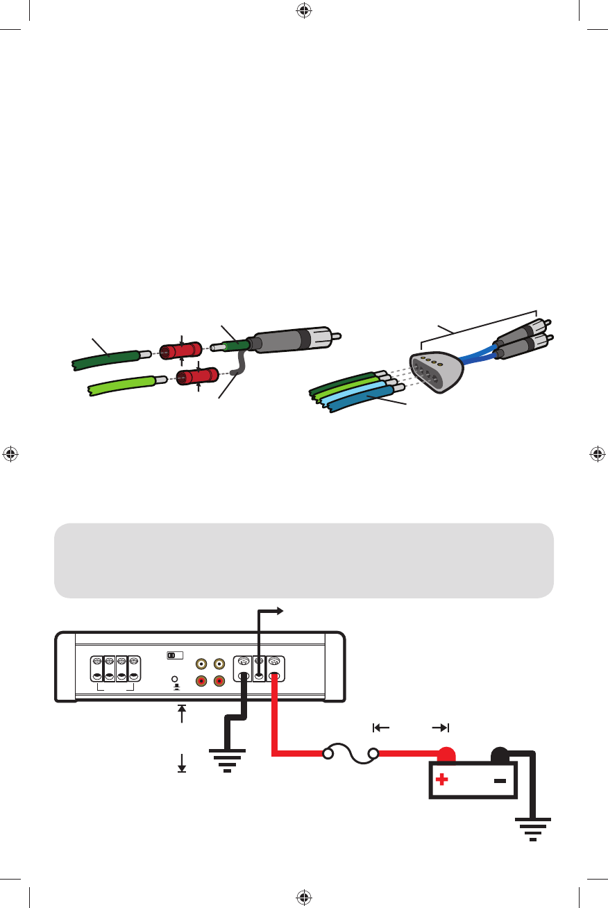 Verstärker. Installieren Sie in maximal 45 cm Entfernung von der Verstärker eine Sicherung in Reihe mit dem
