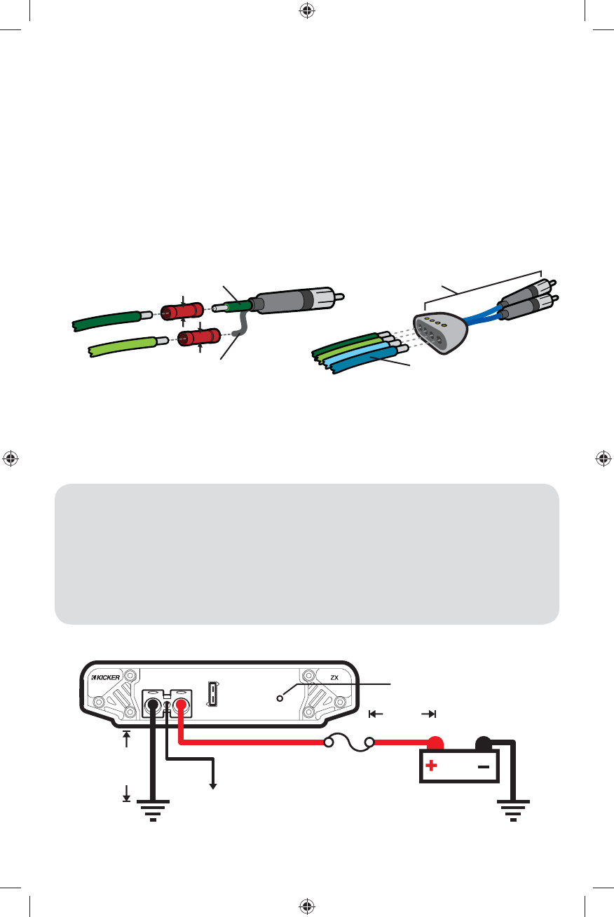 l’appareil source et raccordez le fi l aux entrées RCA sur le panneau d’extrémité de l’amplifi cateur, ou de simplifi er
