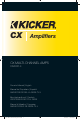 CX.4-SERIES AMPLIFIERS OWNER’S MANUAL Authorized KICKER Dealer: Purchase Date: Serial Number: WARNING: KICKER products are capable of producing sound levels that can permanently damage your hearing! Turning up a system to a level that has audible distortion is more damaging to your ears than listening to an undistorted system at the same volume level. The threshold of pain is always an indicator that the sound level is too loud and may permanently damage your hearing.