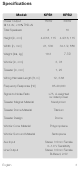 Especificaciones Modelo: KPB1 KPB2 150 W 300 W 6 10 Altura [pulg., mm] 4-9/16,115 4-9/16,115 Ancho [pulg., mm] 21,530 34-1/2,880 16.3 7.39 Potencia de salida @ 14.4V, <10% THD+N Cantidad total de altavoces Peso [lb, kg] Altavoz de baja frecuencia [pulg., mm] 3, 76 Tweeter [pulg., mm] 1, 25 Longitud del cableado de alimentación [ft, m] Respuesta de frecuencia [Hz] Relación señal-ruido 12, 3.