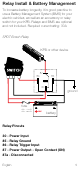 Relaisinstallation und Batteriemanagement Um die Langlebigkeit der Batterie zu erhöhen, ist es sinnvoll, ein Batteriemanagementsystem (BMS) für Ihre Elektrofahrzeuge sowie einen Zubehör- oder Relaisschalter für Ihre KPB zu verwenden. Relais und BMS sind separat erhältlich und nicht im Lieferumfang enthalten.