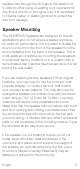 speaker wire through the door jamb. Be careful not to drill into other wiring or existing door mechanisms. Any time a wire is run through a hole, it is necessary to insert a rubber or plastic grommet to protect the wire from damage. Speaker Mounting The KICKER KS Speakers are designed for free-air applications and do not require a sealed enclosure for optimum performance. It is important to isolate the sound coming from the front of the speaker from the sound radiating from the back of the speaker.