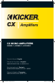 CX.1-SERIES AMPLIFIERS OWNER’S MANUAL MODEL: CX300.1 / CX600.1 / CX1200.1 Authorized KICKER Dealer: Purchase Date: Model Number: Serial Number: PERFORMANCE Model: CX300.1 CX600.1 CX1200.1 RMS Power @ 14.4V, 4Ω mono, 1% THD+N @ 14.