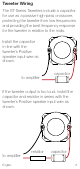 Tweeter Wiring The ST-Series Tweeters include a capacitor for use as a passive high-pass crossover, protecting the tweeter from low frequencies and providing the best frequency response for the tweeter in relation to the mids. Install the capacitor in-line with the tweeter’s Positive speaker input wire as shown. to amplifier capacitor If the tweeter output is too loud, install the capacitor and resistor in series with the tweeter’s Positive speaker input wire as shown.
