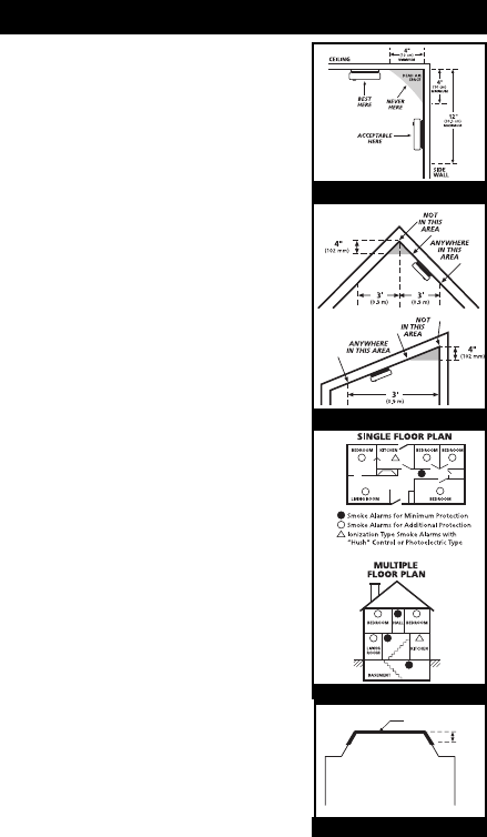 alarm at a minimum of 4” (10 cm) and a