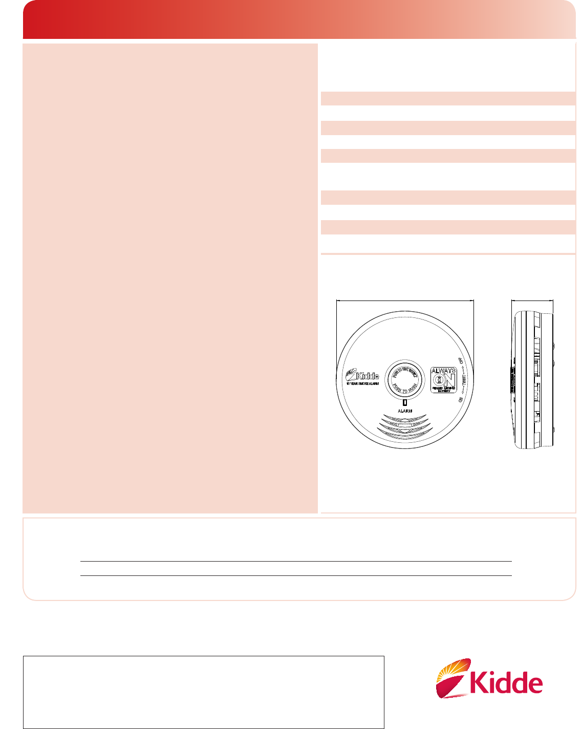 The smoke alarm shall be Kidde unit P3010L or approved equal.