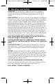 0930-7203-00(820-1493B)_EN:_ 2011.1.5 2:08 PM 11. CAUTION (AS REQUIRED BY THE CALIFORNIA STATE FIRE MARSHAL) Ionization type smoke alarms use a very small amount of a radioactive element in the sensing chamber to enable detection of visible and invisible combustion products. The radioactive element is safely contained in the chamber and requires no adjustments or maintenance. This smoke alarm meets or exceeds all government standards. It is manufactured and distributed under license from the U.S.