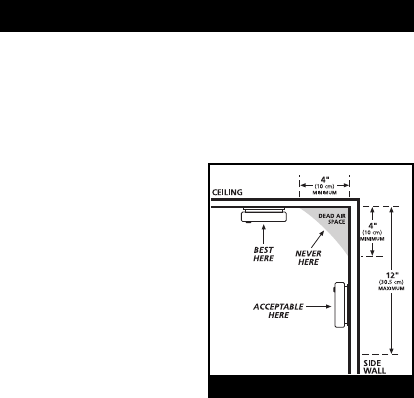 top edge of the alarm at a minimum of 4” (10cm) and a