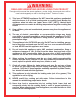 DANGER FOR YOUR SAFETY If you smell gas: 1. Shut off gas to the appliance. 2. Extinguish any open flame. 3. If odor continues, keep away from the appliance and immediately call your Fire Department. FAILURE TO FOLLOW THESE INSTRUCTIONS COULD RESULT IN FIRE OR EXPLOSION WHICH COULD CAUSE PROPERTY DAMAGE, PERSONAL INJURY OR DEATH. 1. 2. 3. 4. 5. 6. 7. DANGER Never operate this appliance unattended. Never operate this appliance within 10 feet (3.