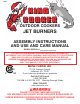English OUTDOOR COOKERS JET BURNERS ASSEMBLY INSTRUCTIONS AND USE AND CARE MANUAL MODEL/SERIAL # __________ THE INSTRUCTION MANUAL CONTAINS IMPORTANT INFORMATION NECESSARY FOR THE PROPER ASSEMBLY AND SAFE USE OF THE APPLIANCE. READ AND FOLLOW ALL WARNINGS AND INSTRUCTIONS BEFORE ASSEMBLING AND USING THE APPLIANCE. FOLLOW ALL WARNINGS AND INSTRUCTIONS WHEN USING THE APPLIANCE. KEEP THIS MANUAL FOR FUTURE REFERENCE. METAL FUSION, INC. 712 St. George Avenue.