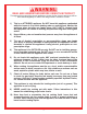 DANGER FOR YOUR SAFETY If you smell gas: 1. Shut off gas to the appliance. 2. Extinguish any open flame. 3. If odor continues, keep away from the appliance and immediately call your Fire Department. FAILURE TO FOLLOW THESE INSTRUCTIONS COULD RESULT IN FIRE OR EXPLOSION WHICH COULD CAUSE PROPERTY DAMAGE, PERSONAL INJURY OR DEATH. 1. 2. 3. 4. 5. 6. 7. DANGER Never operate this appliance unattended. Never operate this appliance within 10 feet (3.
