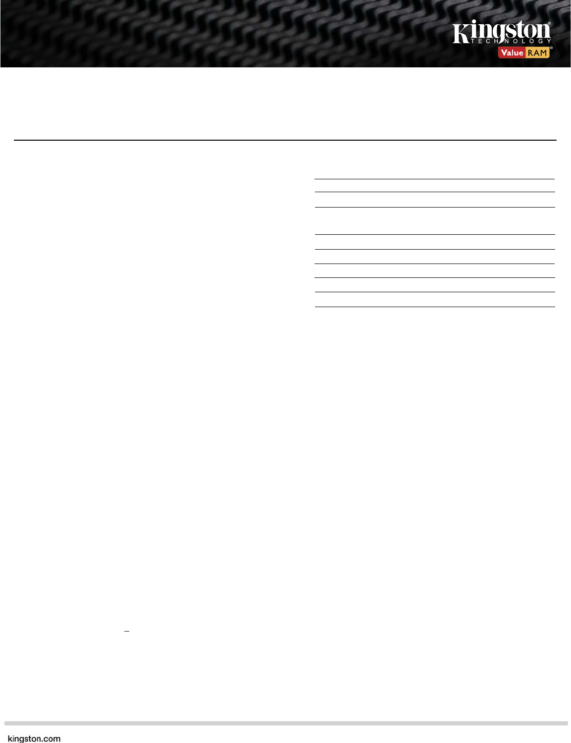 This document describes ValueRAM's 1G x 72-bit (8GB) DDR3-
