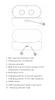1 . M I C in p u t p o rt/in d i cat or l i ght 2 . C h a r g in g p o in t o f ear phone 3 . S i l i co n e e a rmu ffs 4 . M F B mu lti-fu n c tio n but t on ( power on/ off , p l a y/p a u s e , a n s w er / hang up) 5 . D e c o ra tiv e c irc le 6 . C h a r g in g p o s itio n of t he l ef t ear phone 7 . C h a r g in g p o s itio n of t he r i ght ear phone 8 . O P E N b u tto n 9 . U S B c h a rg in g p o rt ( pow er i nput por t ) 1 0 .