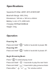 Specifications Supported Profiles: A2DP, HFP, AVRCP,HSP Bluetooth Range: 33ft (10m) Dimensions: 120 mm x 120 mm x 60mm Battery: Li-Ion 3.7V, 2400 mAh Charging: DC5V±0.5/650mA Weight: 412g Operation Powering On Press and Hold " " button 2 seconds to power ON . Powering Off Press and Hold " " button 2 seconds to power off .