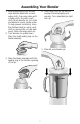 Assembling Your Blender 1. Before assembling your blender wipe blender base with a warm sudsy cloth, then wipe clean with a damp cloth. Dry with a soft cloth. Wash blender jar, lid, collar and blades in warm, sudsy water. To help prevent scratching, clean the stainless steel jar using a soft cloth or sponge (do not use steel wool). Rinse and wipe parts dry. 2. Turn blender jar upside down. Place the small sealing ring on the blade assembly. 4. Twist collar onto jar.