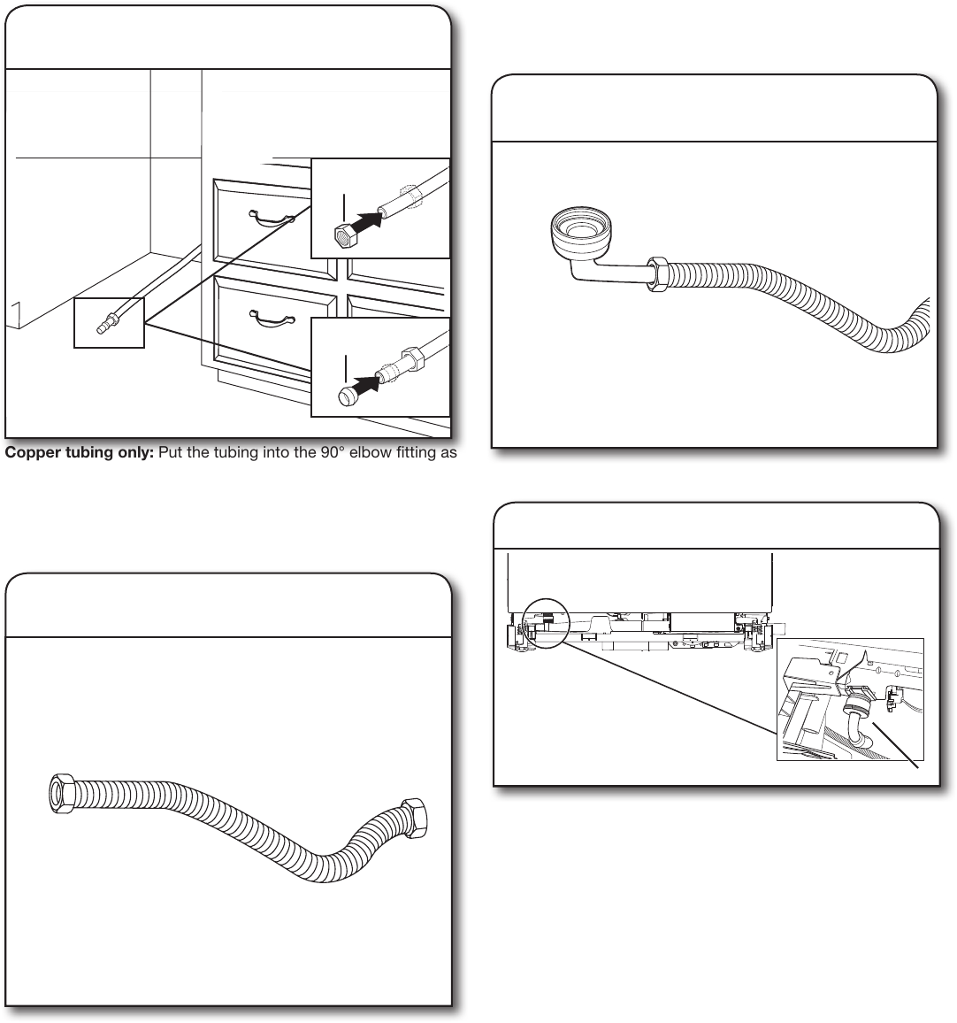 Copper tubing only: Put the tubing into the 90° elbow tting as