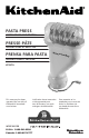 PASTA PRESS INSTRUCTIONS AND RECIPES PRESSE-PÂTE INSTRUCTIONS ET RECETTES PRENSA PARA PASTA INSTRUCCIONES Y RECETAS KPEXTA This accessory has been approved for use with all KitchenAid® household stand mixers. W10236413B U.S.A.: 1-800-541-6390 Canada: 1-800-807-6777 L’utilisation de cet accessoire a été approuvée pour tous les batteurs sur socle ménagers de KitchenAid®. Este accesorio se ha aprobado para usarse con todas las batidoras de uso doméstico con base KitchenAid®.