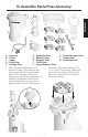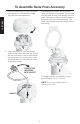 To Attach Pasta Press Accessory 6. It may be necessary to rotate the accessory back and forth. When the accessory is in proper position, the pin on the accessory housing will fit into the notch on the hub rim. 7. Tighten the accessory knob by turning it clockwise until the accessory is completely secured to stand mixer. Before Attaching Pasta Press Accessory ENGLISH Remove “Do not immerse in water” label, and detach the storage case from the accessory housing top. To 1. 2. 3.