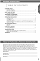 Lao Ee ee TABLE OF CONTENTS BLENDER SAFETY important safeguards... Electrical requirements .. PARTS AND FEATURES Parts and SUCCESSORS ovr oererirorensonasrones antes nnn 6 ASSEMBLING THE BLENDER Preparing the Blender for Use... eee © COOPERATING THE BLENDER Using the Blender Crushing ice. Using PULSE Using the Blender pitcher ingredient cup, and Soft Start blending feature Speed control guide... TIPS FOR GREAT RESULTS Quick tips . How CARE AND CLEANING Cleaning the Blender .